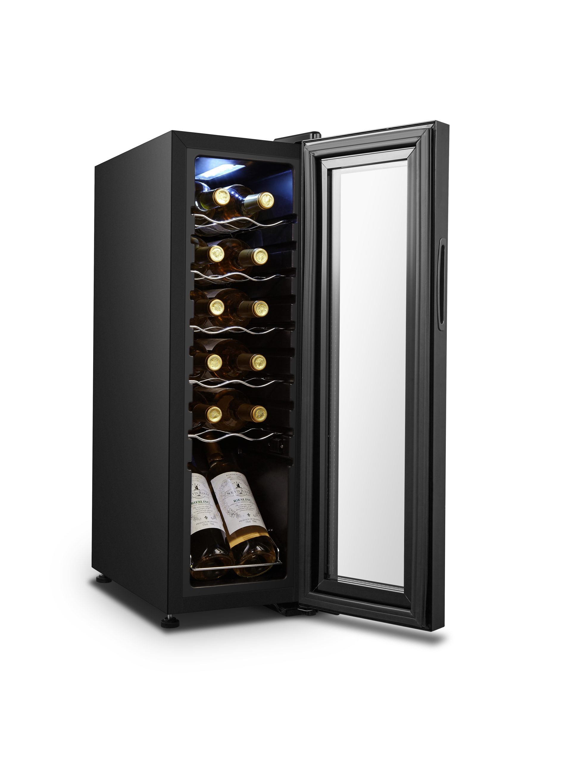 מקרר יין עם מדפי נירוסטה המיועד לאחסון של עד 12 בקבוקי יין אדום או לבן.